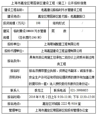 索引号: 发布机构: 菊园新区 发文日期: 2016年08月29日 主题分类: 专项启事 关键词: 建设工程(施工)公开招标信息(老嘉唐公路临时污水管建设工程) 来源:菊园新区 发布时间:2016-08-29 浏览次数: 次 【字体:小 大】 分享到: